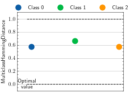 >>> # Example plotting a single value per class >>> from torch import randint >>> from torchmetrics.classification import MulticlassHammingDistance >>> metric = MulticlassHammingDistance(num_classes=3, average=None) >>> metric.update(randint(3, (20,)), randint(3, (20,))) >>> fig_, ax_ = metric.plot()