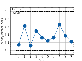 >>> # Example plotting multiple values >>> from torch import rand, randint >>> from torchmetrics.classification import BinaryJaccardIndex >>> metric = BinaryJaccardIndex() >>> values = [ ] >>> for _ in range(10): ... values.append(metric(rand(10), randint(2,(10,)))) >>> fig_, ax_ = metric.plot(values)