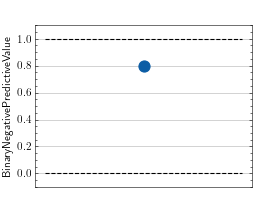 \[\text{Negative Predictive Value} = \frac{\text{TN}}{\text{TN} + \text{FP}}\]Where \(\text{TN}\) and \(\text{FP}\) represent the number of true negatives and false positives respectively. The metric is only proper defined when \(\text{TN} + \text{FP} \neq 0\). If this case is encountered a score of 0 is returned.
