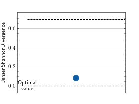 >>> from torch import randn >>> # Example plotting a single value >>> from torchmetrics.regression import JensenShannonDivergence >>> metric = JensenShannonDivergence() >>> metric.update(randn(10,3).softmax(dim=-1), randn(10,3).softmax(dim=-1)) >>> fig_, ax_ = metric.plot()